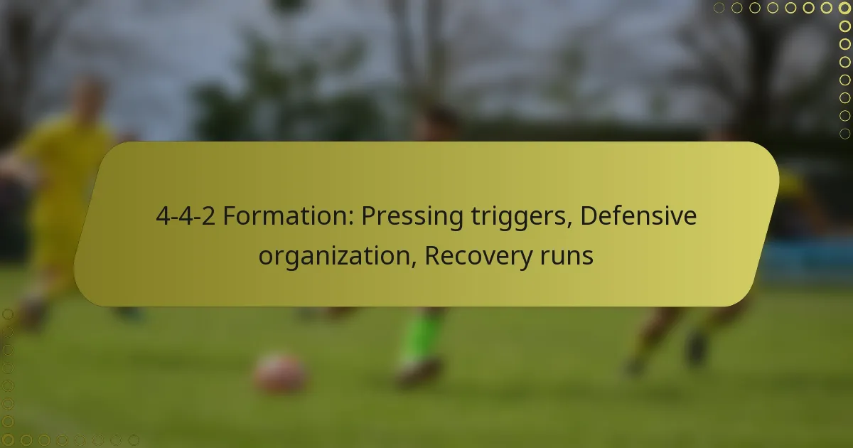 The 4-4-2 formation is a tactical setup that emphasizes pressing triggers, defensive organization, and recovery runs to enhance team performance. Pressing triggers prompt players to engage the opposition at strategic moments, while a compact defensive shape ensures effective support and quick transitions. Additionally, recovery runs are vital for regaining defensive structure after losing possession, allowing the team to minimize vulnerabilities against attacking opponents.